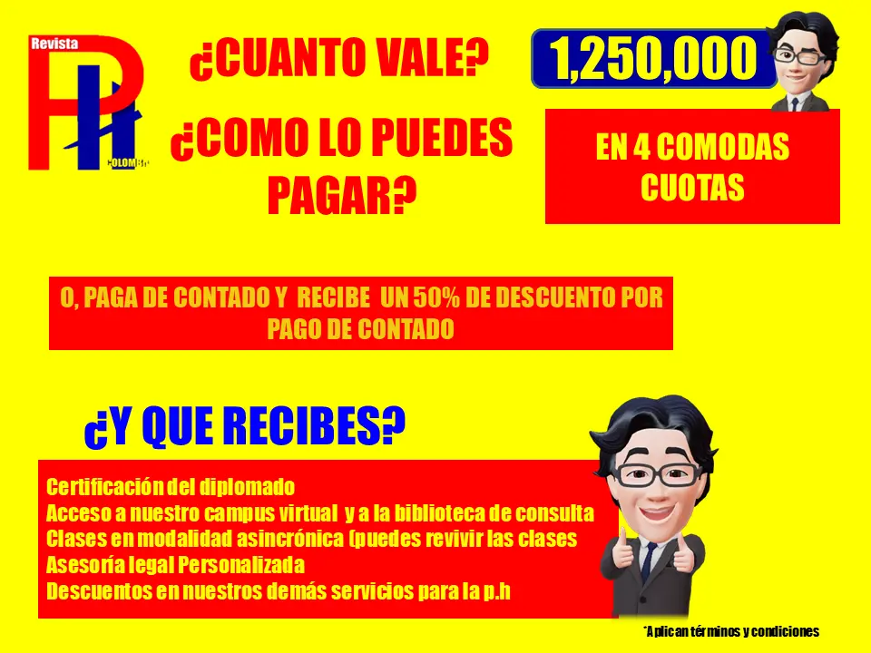 El diplomado ,aborda , todos los temas de propiedad horizontal , pero en tus clases sincronicas puedes hacer todo tipo de consulta, inclusive de casuistica.